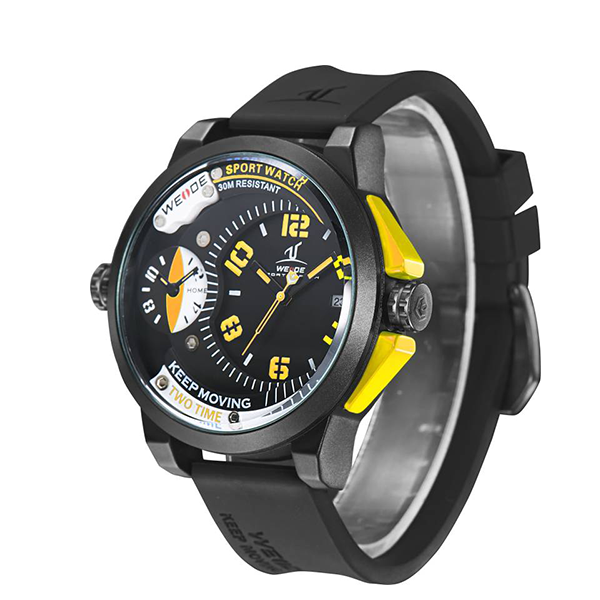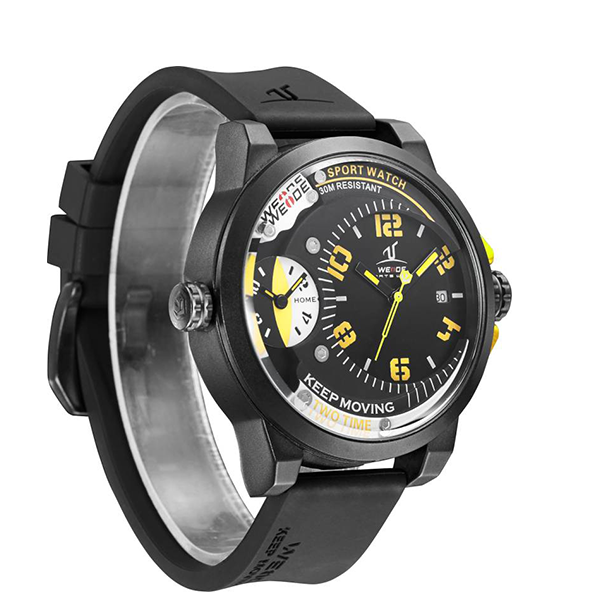 Weide WH-1501 Silicone Strap, Stainless Steel Dial Sports Watch, Extra complete calendar function, excellent two time zones display, Silicone watch band and stainless steel case, Unique electroplating 3D WEIDE & universe logo on two strap rings, 30 meters water resistant(Please Don't Press Any Keys Underwater)
